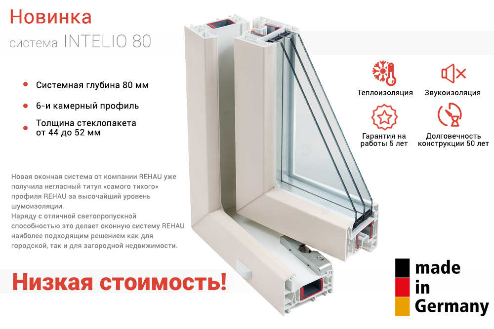 Окна Rexau системы Intelio объединили в себе все преимущества пластиковых окон и демонстрируют очень высокий уровень звукоизоляции окон ПВХ, теплозащиты окон ПВХ, прочности окон, а в сочетании с невысокой стоимостью остекления, идеально подойдут для установки в детских комнатах, остеклении коттеджа и установки окон «от пола до потолка».